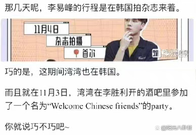 除了吴某凡外,李易峰与韩国问题男星李胜利也有过公开交际,并且值得一提的是,李易峰被曝与网红湾湾相识,就是通过李胜利在韩国的酒吧。