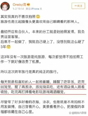 据悉,在2018年年底,李易峰与湾湾各自通过微博透露了自己在外面旅游的事情,其中,湾湾将对方形容为“54先生”,并在之后的微博中透露了两人在苏梅岛五天四晚的生活中十分“难忘”。