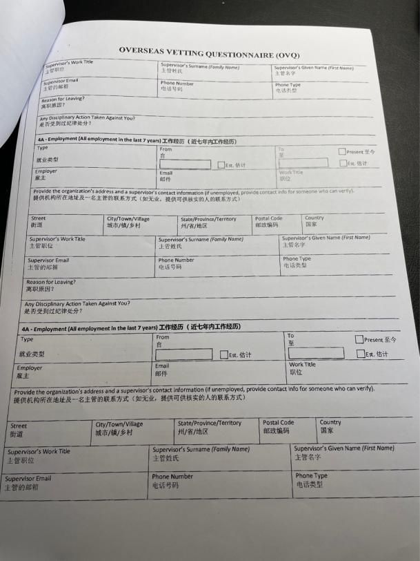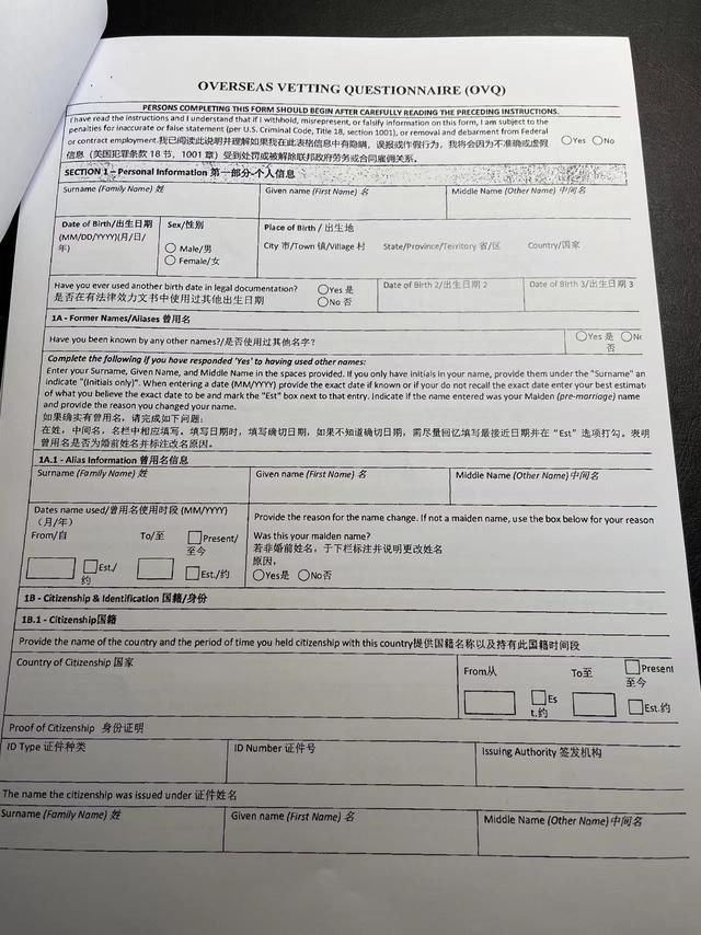 《海外背景调查问卷》(Overseas Vetting Questionnaire)的问题无所不包